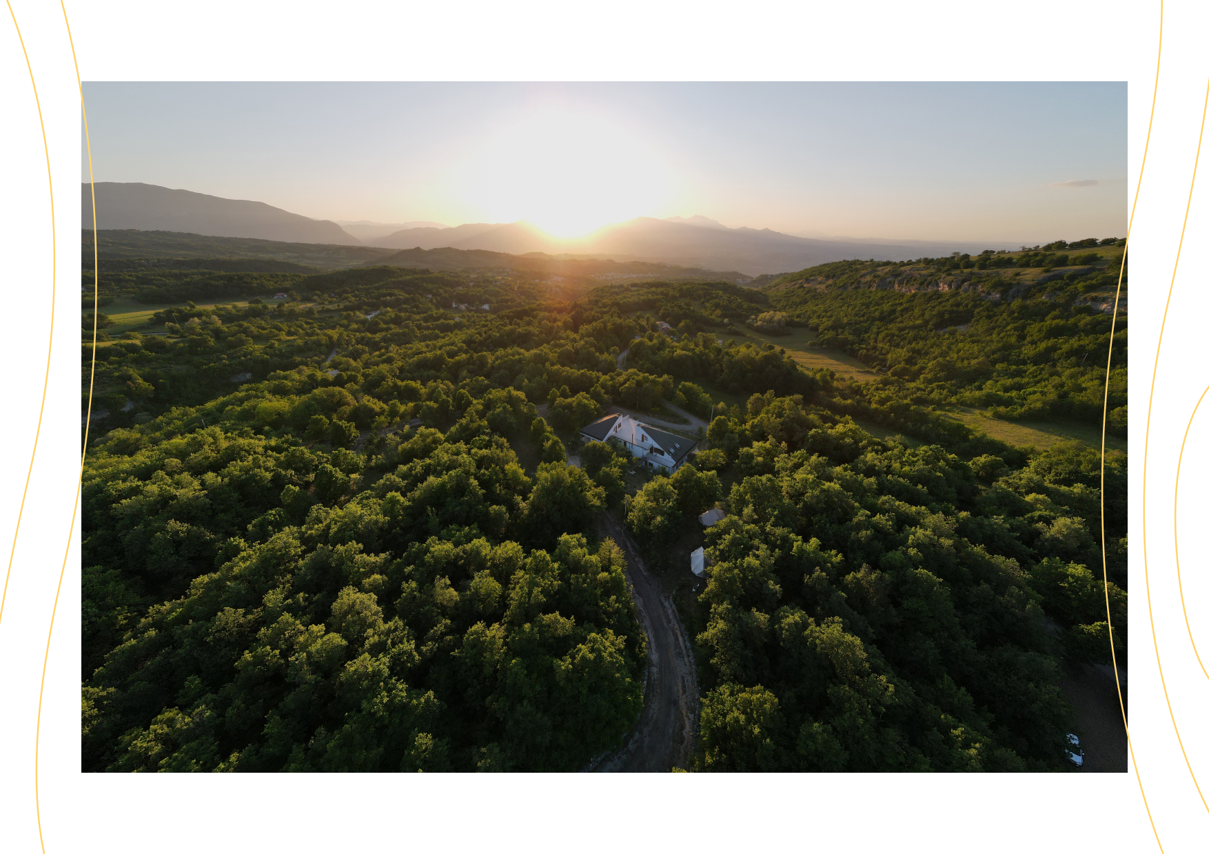 A window opening onto a mountain night, framing the characteristic features of the Dimore.