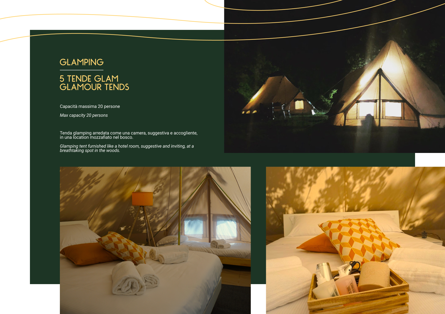 The illustrated style emphasizes the fairytale-like spirit of the place and the experience awaiting visitors of Dimore Montane.